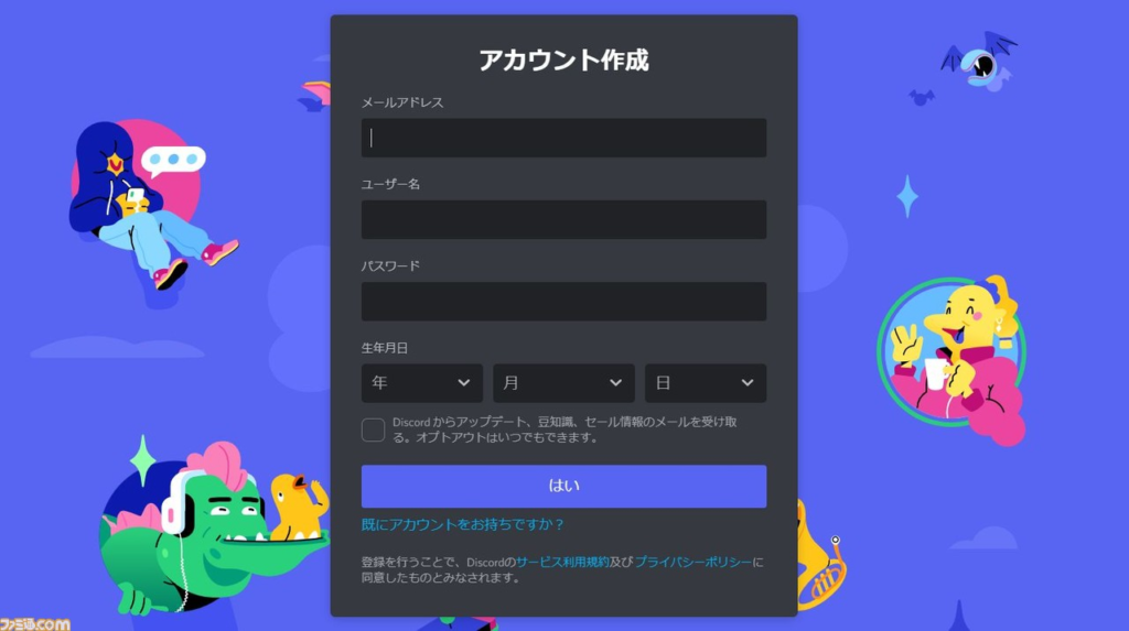 持っていない方は、まずディスコードアカウントを作りましょう。