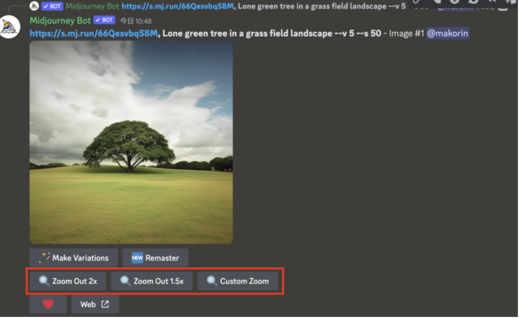 U1を選択したところです。するとここでやっとZoom Outボタンが出てきますので、お好きなオプションを選択。ここでは2倍ズームアウトした引きの画像、つまり見切れてしまった範囲を作ってもらいます。