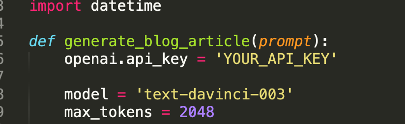 post.pyの下の方に一個だけプロンプトが書いてあります。ここを適宜変えると、テーマの違う記事になります。