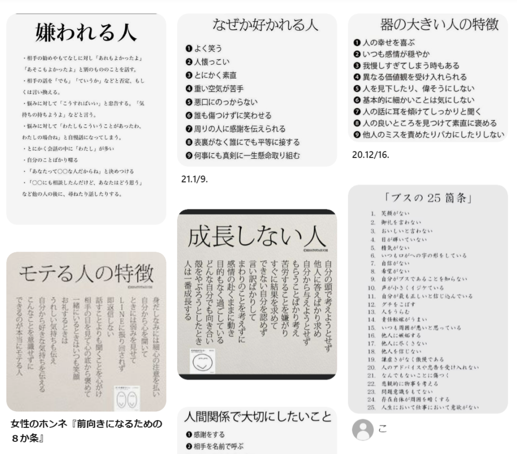 これはシンプルに自分が「いい」「モチベーションがあがる」と思うものをストックしていきます。あなたが「いい」と思えば、他の誰かも共感してくれるはずです。